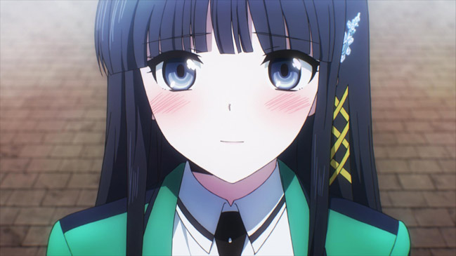 Tatsuya's younger sister and first-year student in Class 1-A at First High. She is next in line to be the head of the Yotsuba family, and unlike her brother, she is extremely talented as a magician. She is a world-class specialist in the use of Freezing Magic and is known for her exceptional beauty as well as top-ranking grades at school but suffers from a severe brother complex.