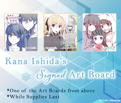 Random one out of the three different prints of signed art board sketched by Character Designer, Chief Animation Director, and Original Illustartor, Kana Ishida (while supplies last).