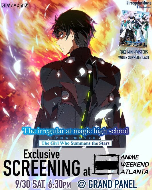 2017.09.29 IrregularMovie Screening @ awacon 2017! The irregular at magic high school will be stopping by at AnimeWeekendAtlanta to screen the #IrregularMovie! Come join us on 9/30 (Sat) at 6:30PM!